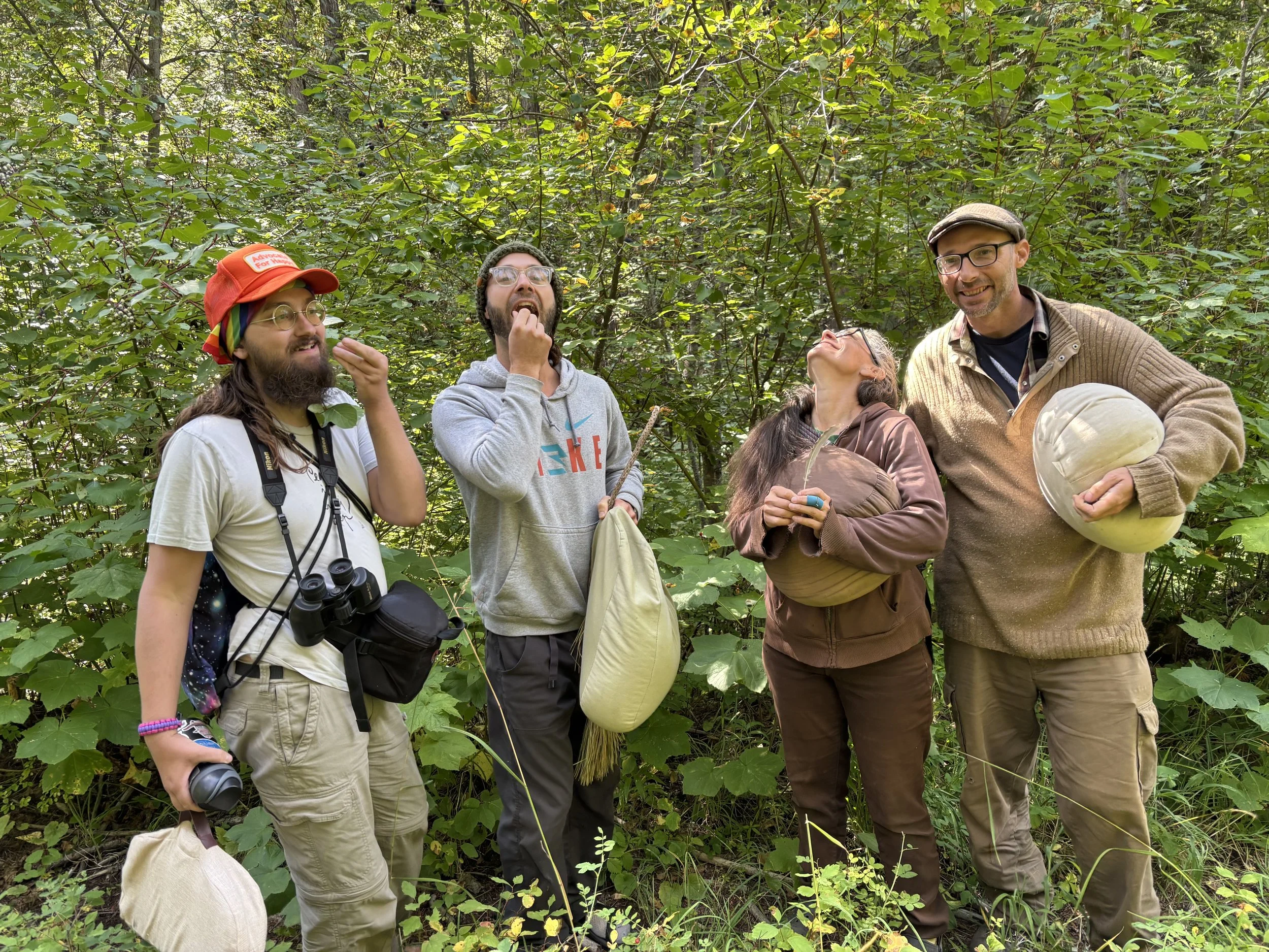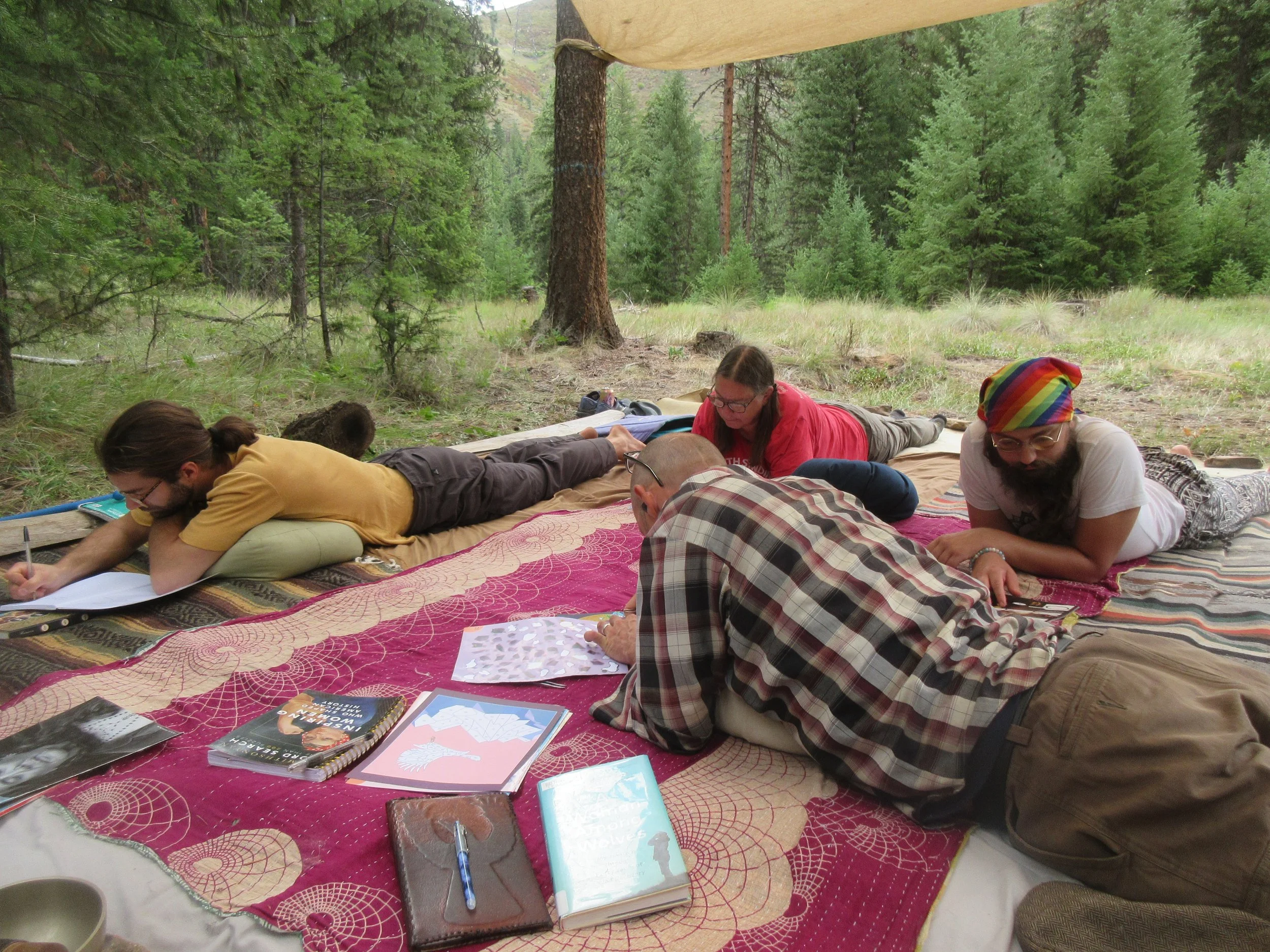 We organized and led our 3rd annual camping retreat here at EM last weekend. It started in the evening on Friday August 15 and ended after lunch on Sunday August 17. There were 7 of us in total, although one person, sadly, wound up feeling quite ill when they arrived. They were unable to participate in any of the programming and rested all weekend. Part of our mission here at Empty Mountain is to make available a place for folks to rest & heal, in the loving presence of the woods. We dearly wish our friend wouldn’t have been sick during our retreat, of course, but she reported feeling grateful to be resting in the quiet woods with all of us nearby.