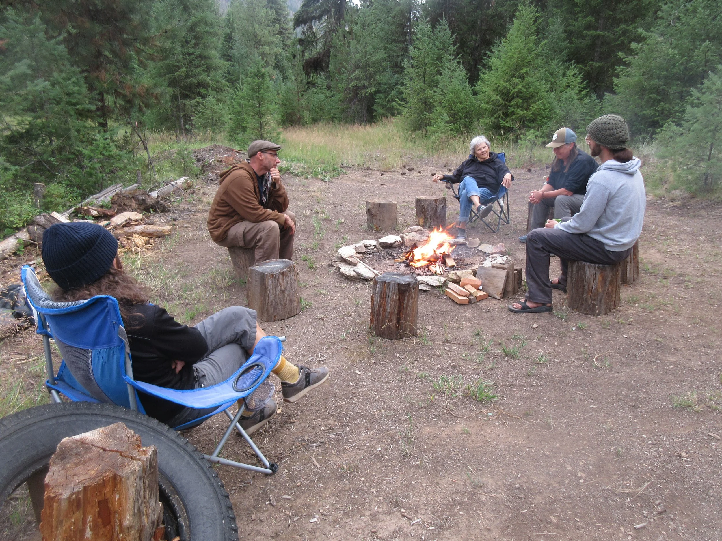 We start Noble Silence Friday night after our welcome & intro circle, which extends until Saturday afternoon around 5pm. We have open social time for the rest of the evening on Saturday, which includes dinner and whatever we decide to do after we eat, which is unstructured community hang-out time. During this last retreat, we had a small campfire after dinner. (It’s wildfire season here in Montana but we checked on the fire status and it was moderate at the time, which meant small campfires were okay so long as people stuck close by them and made sure to put them all the way out.) We all sat around the fire chatting and had such a nice time together. Our friend who was sick even managed to come and join us for a little bit.